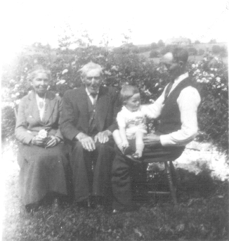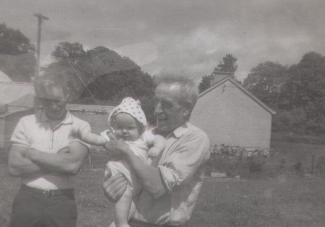 Not sure who is pictured here. The photo is none too clear in part. Hopefully a better print exists. The baby was not very old at the time. Information from Mary & Ellen Geraghty. The photo of the two men and the baby boy are Mary's husband Richard (Dick - holding the baby) and her eldest son Richard (also Dick) and Mary's first Grandson James a son of mine (Mary). |